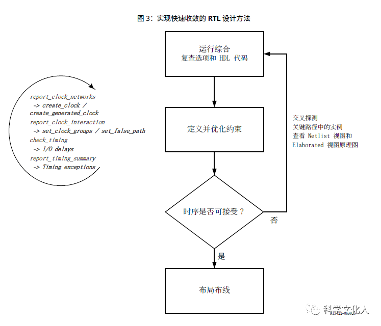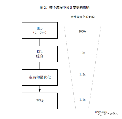 在開發(fā)周期早期,需要注意時(shí)序設(shè)計(jì)目標(biāo)。設(shè)計(jì)流程的早期階段(C、C++ 和 RTL 綜合)對(duì)于設(shè)計(jì)性能、密度和功耗的影響遠(yuǎn)超后期實(shí)現(xiàn)階段的影響。因此,如果設(shè)計(jì)不滿足時(shí)序目標(biāo),建議重新評(píng)估綜合階段(包括 HDL 和約束),而不是僅在實(shí)現(xiàn)階段通過迭代來尋找解決方案。圖2中關(guān)于HLS,高層次綜合,主要面對(duì)從事軟件開發(fā)人員,但是他想利用FPGA進(jìn)行工程設(shè)計(jì),說不定他不懂RTL,不懂HDL,因此采用高級(jí)語言C或C++來設(shè)計(jì)。