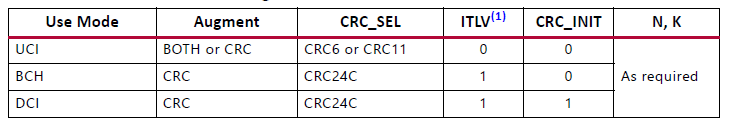 例如5G無線,參考3GPP TS 38.212 V15.1.1 Multiplexing and channel coding(Release 15),支持DCI、UCI、和BCH。Polar使用模式設(shè)置,如下表所示。