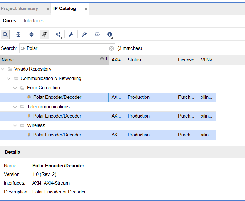 新建一個(gè)工程,通過Vivado的IP目錄,我們輕松找到Polar IP核:
