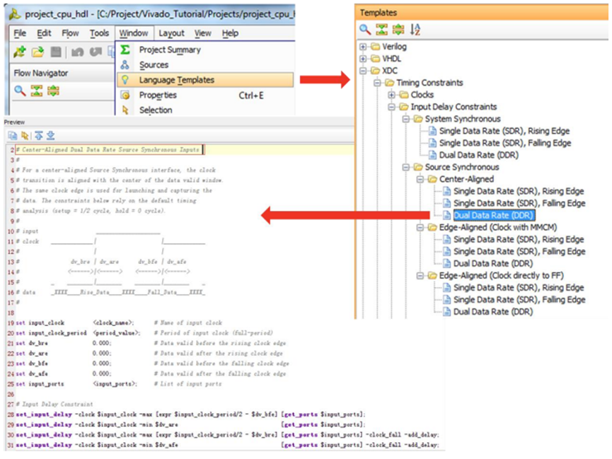 FPGA 的接口約束種類多變,遠(yuǎn)非一篇短文可以完全覆蓋。在具體設(shè)計(jì)中,建議用戶參照 Vivado IDE 的 Language Templates 。其中關(guān)于接口約束的例子有很多,而且也是按照本文所述的各種分類方法分別列出。