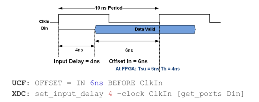 如果需要從舊設(shè)計(jì)的 UCF 約束轉(zhuǎn)到 XDC 約束,可以參考上述例子。以一個(gè)采樣周期來看,UCF 中與 XDC 中設(shè)置的接口約束值加起來正好等于一個(gè)周期的值。
