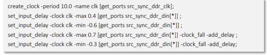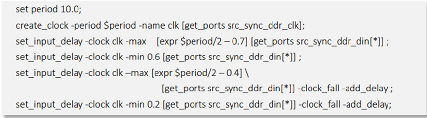 DDR 源同步接口的約束稍許復(fù)雜,需要將上升沿和下降沿分別考慮和約束,以下以源同步接口為例,分別就輸入接口數(shù)據(jù)為中心對齊或邊沿對齊的方式來舉例。