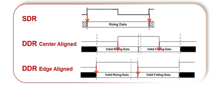 源同步接口最大的優(yōu)點就是大大提升了總線的速度,在理論上信號的傳送可以不受傳輸延遲的影響,所以源同步接口也經(jīng)常應(yīng)用 DDR 方式,在相同時鐘頻率下提供雙倍于 SDR 接口的數(shù)據(jù)帶寬。