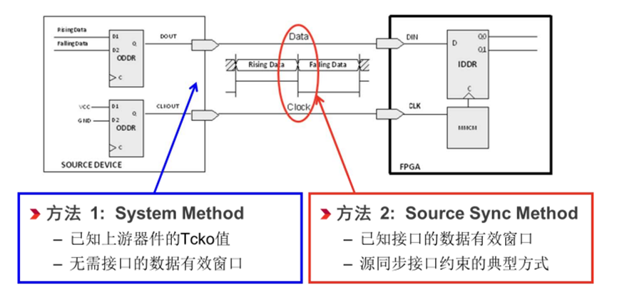 源同步接口的約束設(shè)置相對復(fù)雜,一則是因為有 SDR、DDR、中心對齊(Center Aligned)和邊沿對齊 (Edge Aligned)等多種方式,二則可以根據(jù)客觀已知條件,選用與系統(tǒng)同步接口類似的系統(tǒng)級視角的方式,或是用源同步視角的方式來設(shè)置約束。