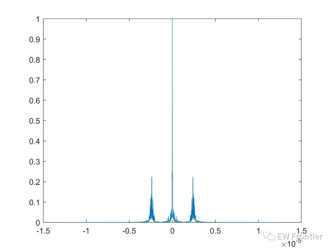 圖4-圖6分別是OFDMMSK-LFM的模糊函數(shù)三維視圖、速度切片與距離切片,看過之前OFDM-16QAM-LFM與OFDM-BPSK-LFM兩篇文章的同學(xué)應(yīng)該能夠發(fā)現(xiàn)MSK調(diào)制令一體化信號(hào)的模糊函數(shù)更趨于圖釘形狀,具有較低的旁瓣,因此其雷達(dá)探測(cè)能力得到很好的保證,而OFDM-MSK-LFM信號(hào)的通信誤碼率取決于MSK調(diào)制,在文末參考文獻(xiàn)中有相應(yīng)的介紹,其通信可靠性較高。
