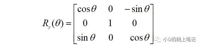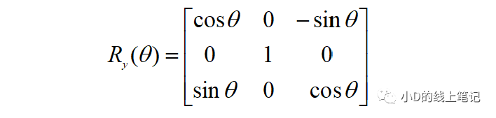 所以,XYZ右手坐標系繞Y軸逆時針旋轉(zhuǎn)θ角的旋轉(zhuǎn)矩陣Ry為: