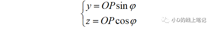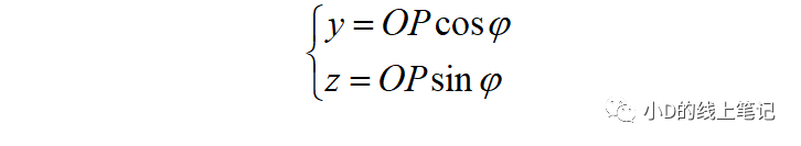 很明顯,點P在XYZ坐標系中的Y,Z軸坐標可以表示為: