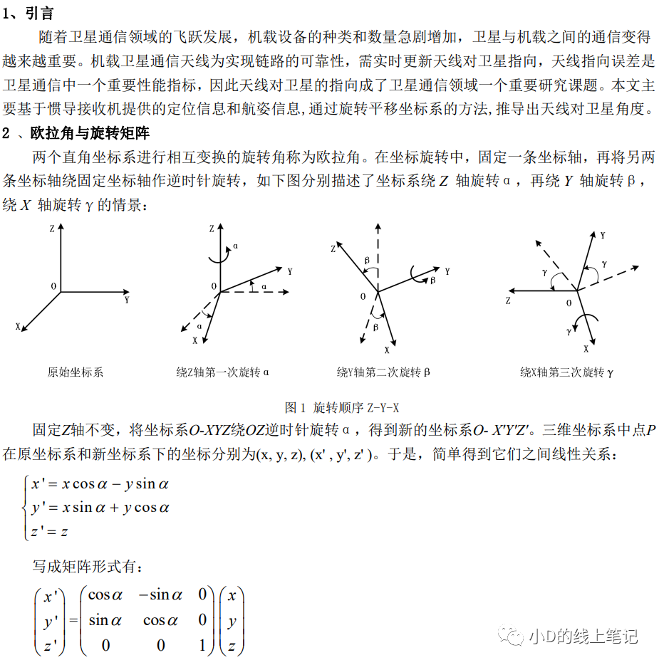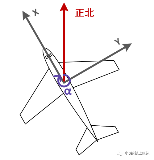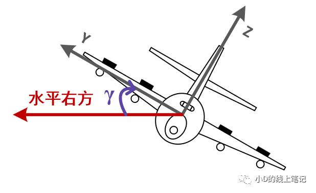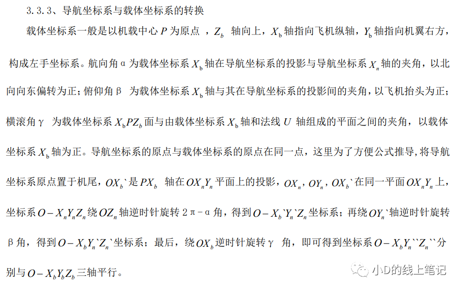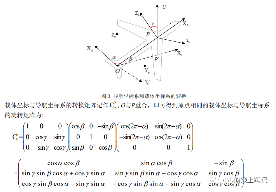 下圖中,α是飛機(jī)的航向角,β是俯仰角,γ是橫滾角,大家可以結(jié)合小D參考的這篇文獻(xiàn)中的解釋來(lái)看這幾個(gè)角,小D把截圖放在文末了。