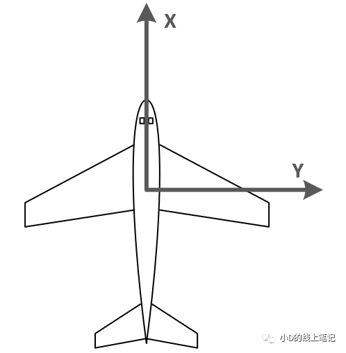 我們今天講的機(jī)體坐標(biāo)系是這樣定義的:X軸正方向指向飛機(jī)前進(jìn)的方向,與機(jī)身縱軸重合,Y軸指向機(jī)身右翼,Z軸垂直于機(jī)身平面向上,構(gòu)成左手坐標(biāo)系。