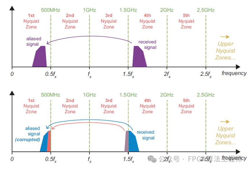 圖5:參考奈奎斯特區(qū)域的混疊示例。