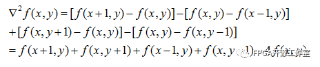 函數(shù)的拉普拉斯算子也是該函數(shù)的黑塞矩陣的跡,可以證明,它具有各向同性,即與坐標(biāo)軸方向無(wú)關(guān),坐標(biāo)軸旋轉(zhuǎn)后梯度結(jié)果不變。如果鄰域系統(tǒng)是4 鄰域,Laplacian 算子的模板為: