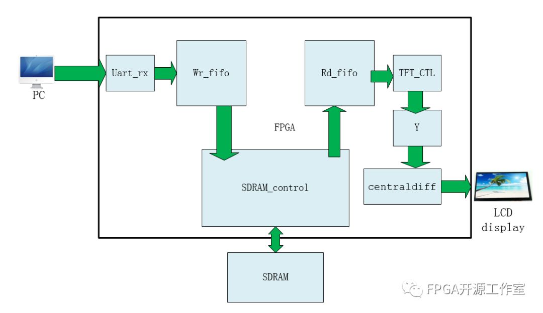 如圖4所示,我們將RGB565格式轉(zhuǎn)化為Ycbcr格式,Y通道進(jìn)入中心差分模塊,完成中心差分算法。