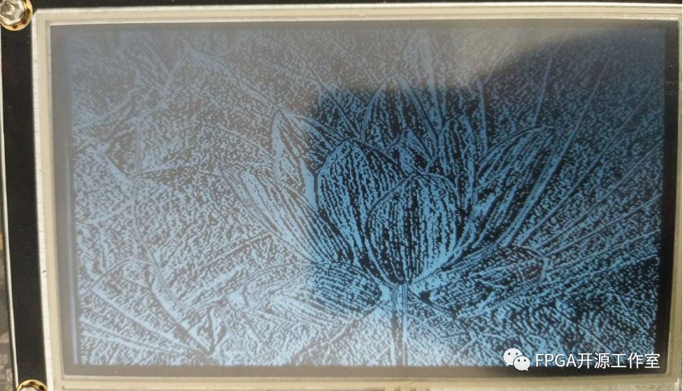 如圖5所示,由于手機(jī)拍攝原因,圖片不是很清晰,但基本結(jié)果一致,實(shí)驗(yàn)成功。我們將把中心差分模塊移植到基于ov5640的實(shí)時(shí)圖像采集系統(tǒng)完成rgb三通道的彩色輸出。