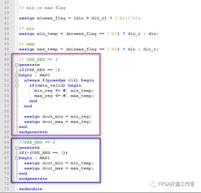 當 USE_REG == 1 的時候,fpga map的紅色框電路,當 USE_REG == 0時,FPGA map的藍色框電路。