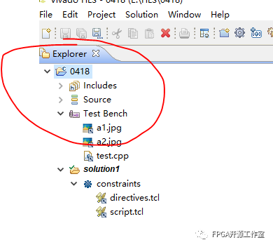 (10)點(diǎn)擊Test Bench 右鍵 add file 添加兩幅運(yùn)動圖像,文件名與top.h中的