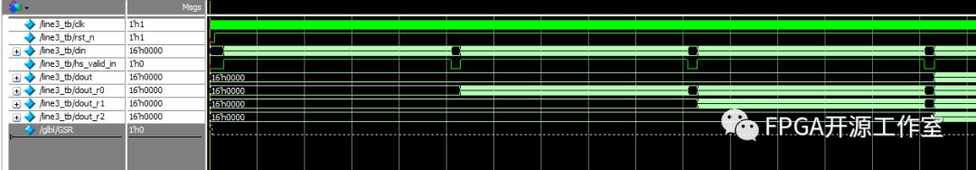 如圖7所示,當(dāng)三行數(shù)據(jù)全出來(lái)時(shí),我們數(shù)據(jù)全部對(duì)齊,說(shuō)明設(shè)計(jì)正確。