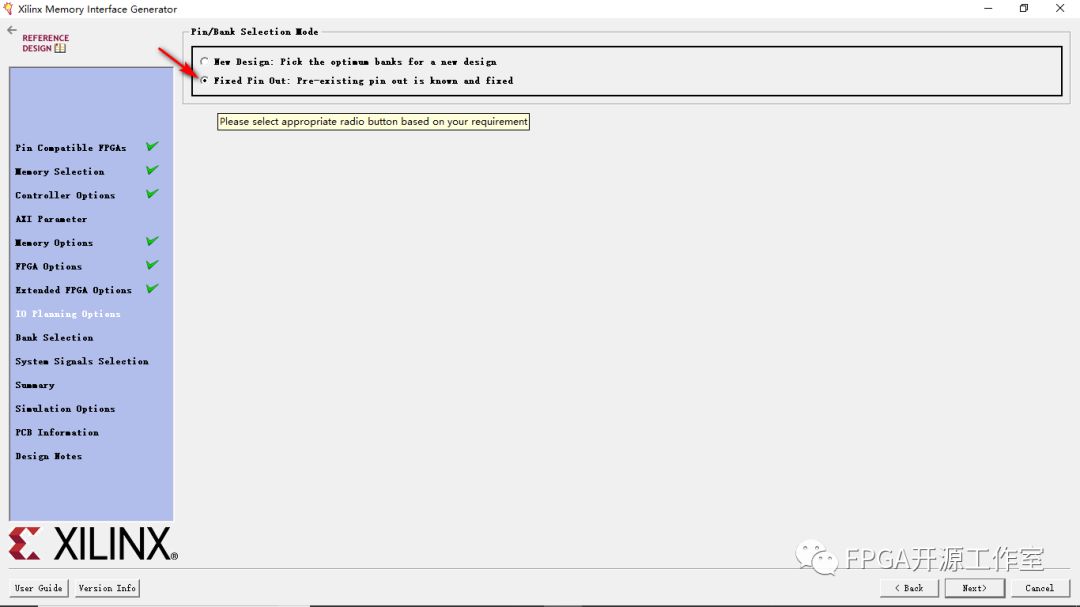 10>選擇Fixed Pin Out。我們的原理圖管腳已經(jīng)確定無(wú)需從新設(shè)計(jì)。