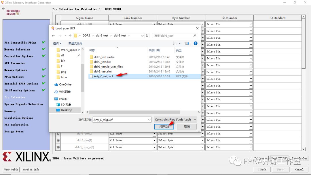 11>點(diǎn)擊Read XDC/UCF,這里DDR3管腳支持兩種約束文件。