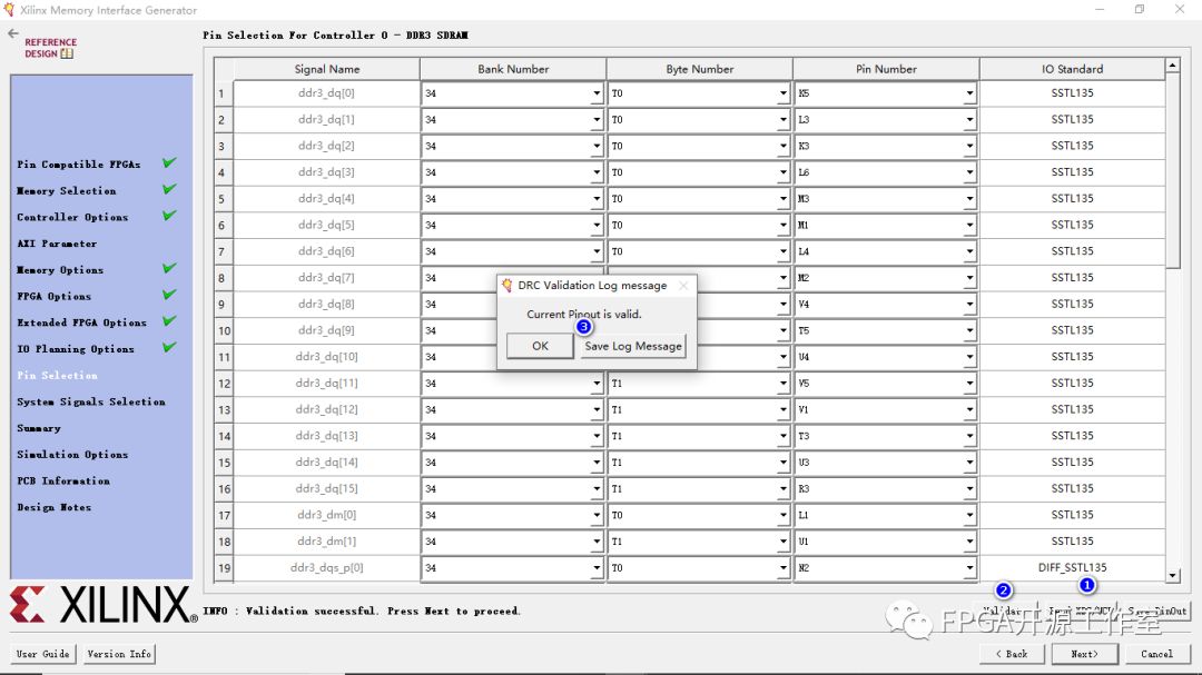 12>點(diǎn)擊Validate驗(yàn)證管腳約束是否有錯(cuò)誤。驗(yàn)證通過(guò)NEXT。