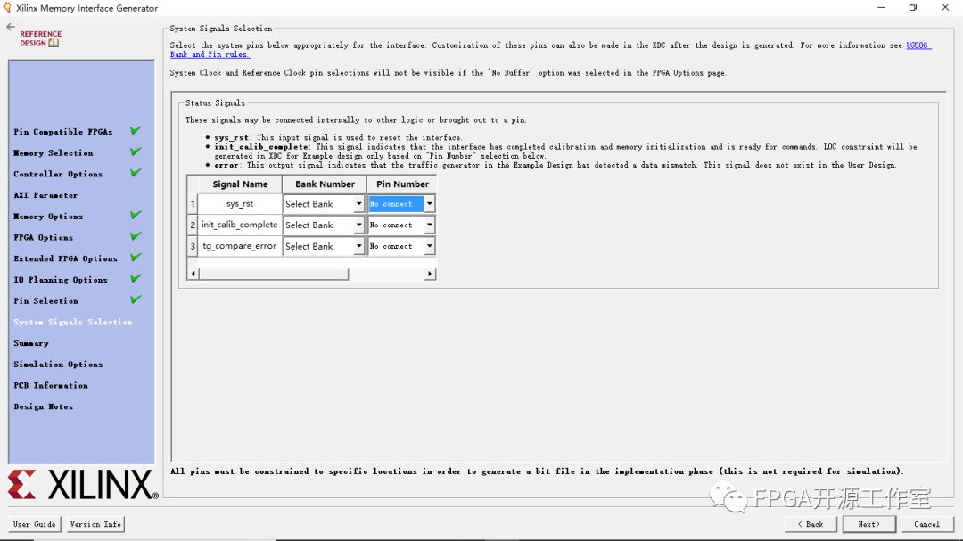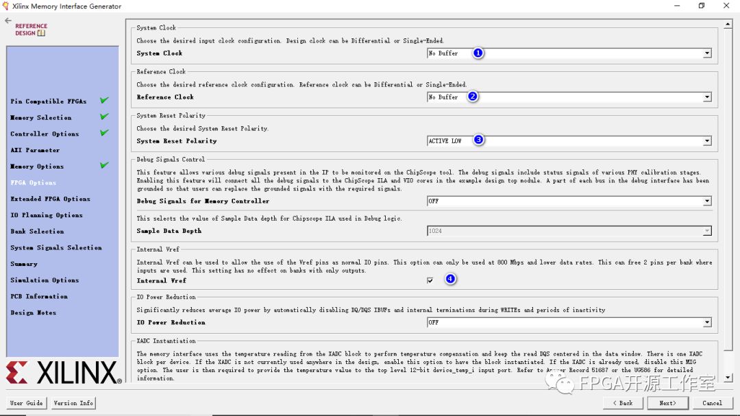 8>①System Clock :(此選項(xiàng)為sys_clk信號(hào)對(duì)選擇時(shí)鐘類型(單端,差分或無(wú)緩沖)。 選擇No Buffer選項(xiàng)時(shí),IBUF原語(yǔ)不會(huì)在RTL代碼中實(shí)例化,并且不會(huì)為系統(tǒng)時(shí)鐘分配引腳。 )No Buffer。