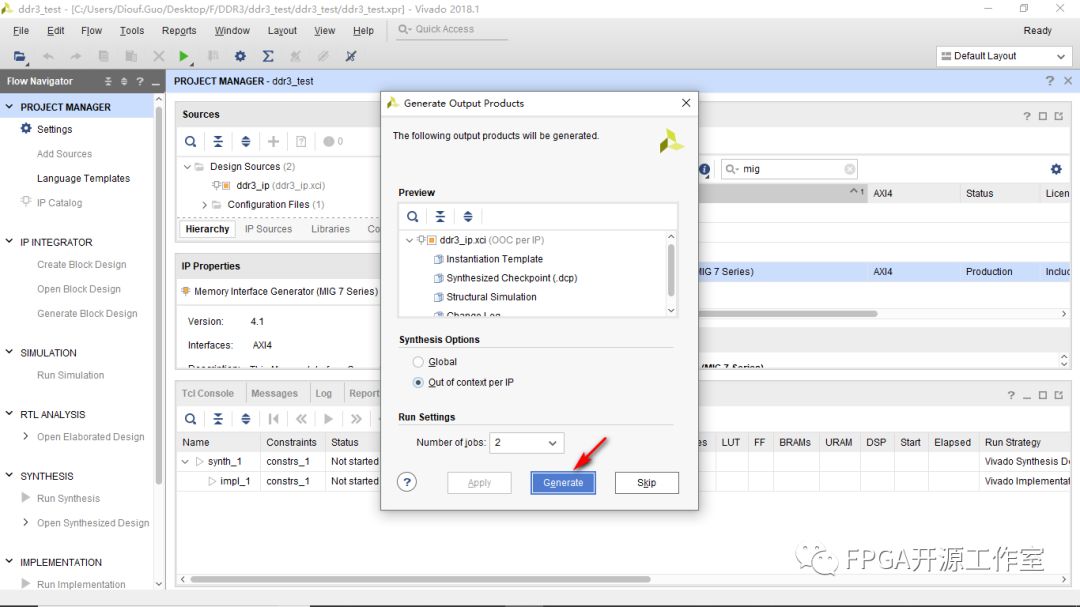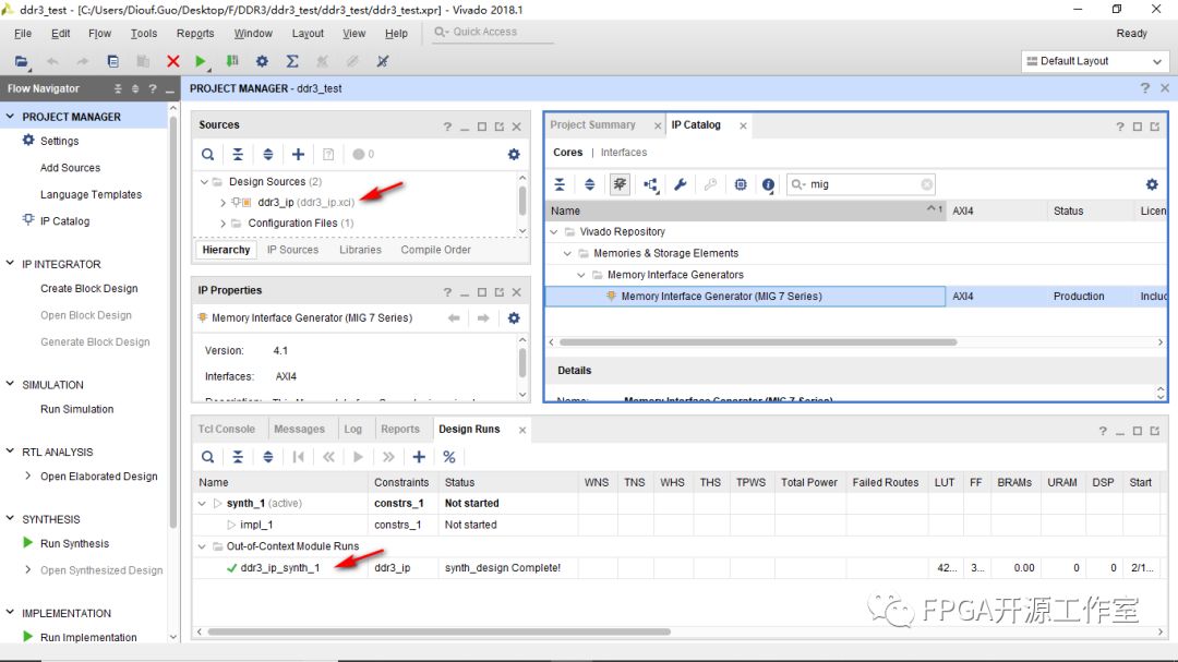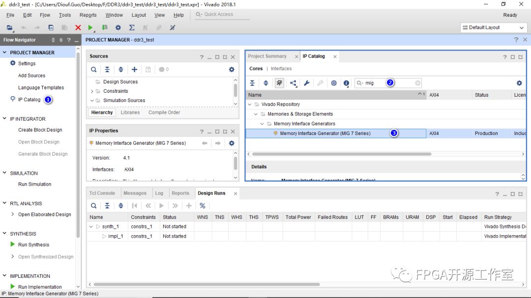 1>點(diǎn)擊IP Catalog ->搜索mig->雙擊Memory Interface Generator(MIG 7 Series)
