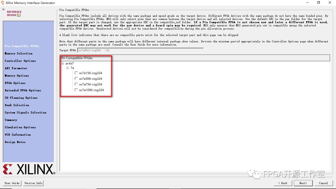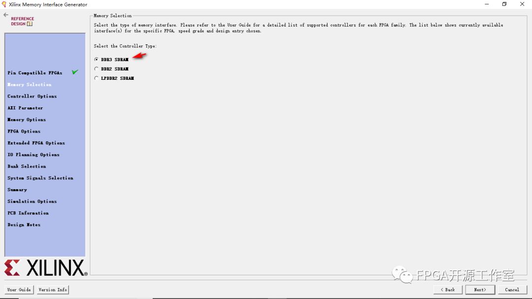 ③Memory Type:此功能選擇設(shè)計(jì)中使用的內(nèi)存部件類型。