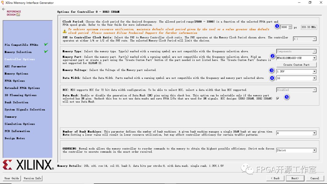 ④Memory Part :此選項(xiàng)為設(shè)計(jì)選擇內(nèi)存部件。 選擇可以從列表中創(chuàng)建或者可以創(chuàng)建新部件。MT41K128M16XX-15E。