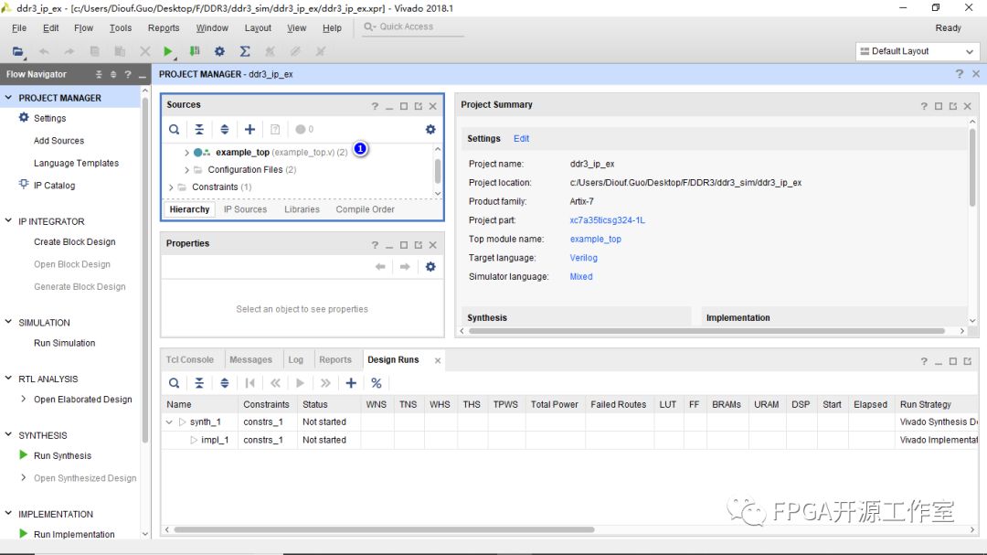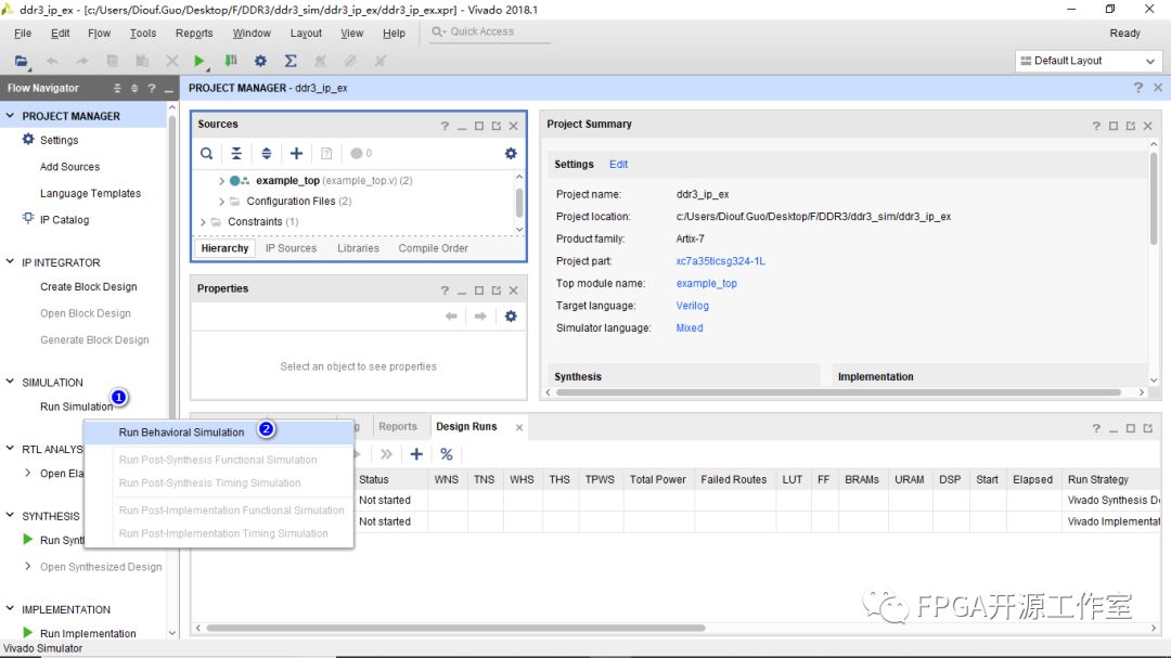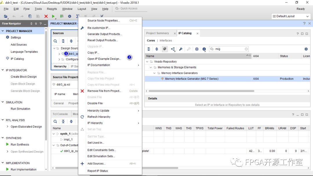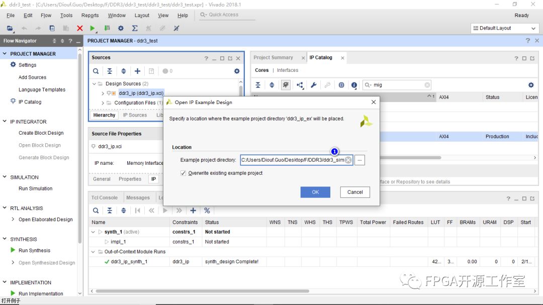 1>①ddr3_ip->②Open IP Example Design
