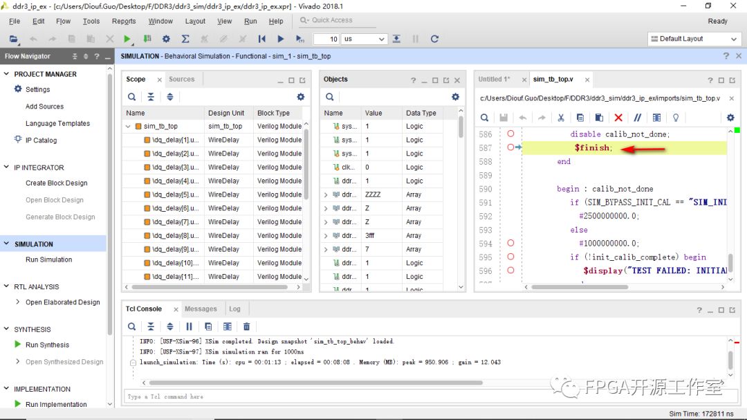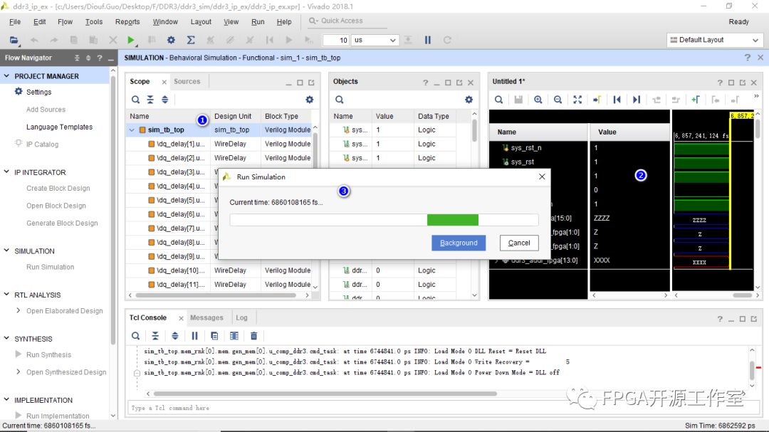 3>DDR3自帶仿真工程生成完畢。