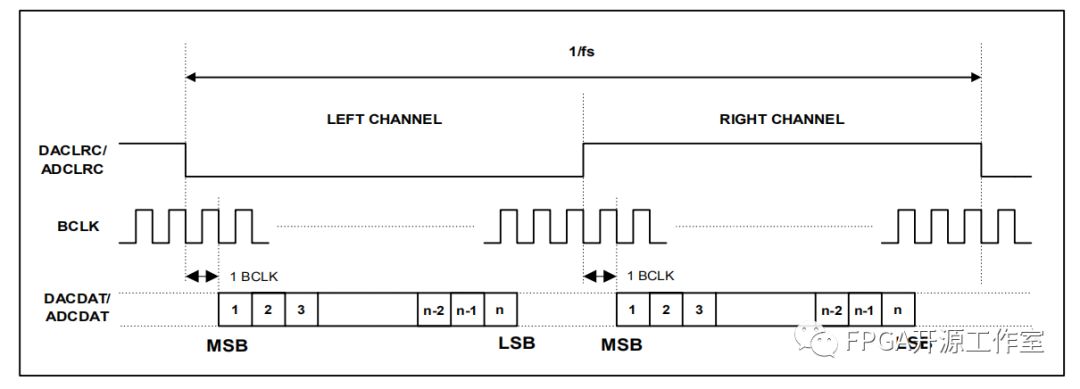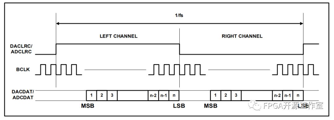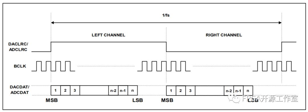 I2S模式:SDATA 的MSB在BCLK的第二個上升獲得根據(jù)LRCK的傳輸。