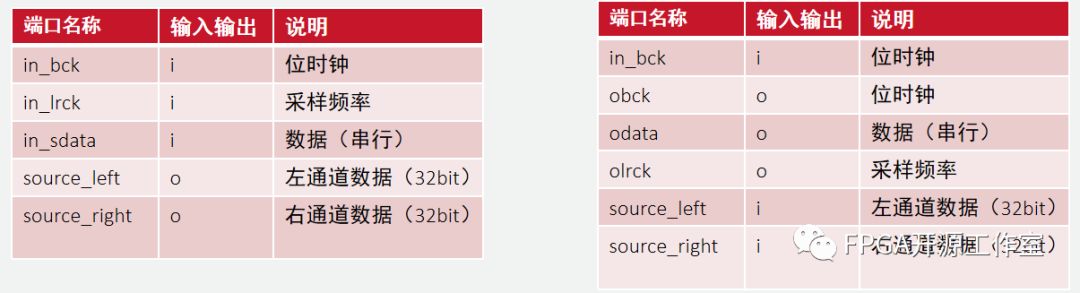 I2s_in模塊和I2s_out模塊的接口說明如下。