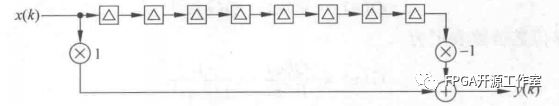 梳狀濾波器的兩端為1和-1的權(quán)值,具有簡(jiǎn)單的多信道頻率響應(yīng)。