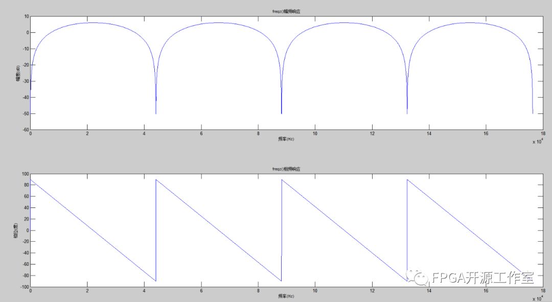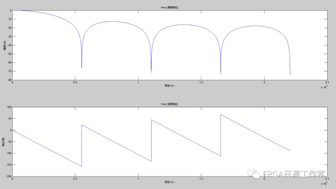 圖2 梳狀濾波器的頻率響應(yīng)和相位響應(yīng)
