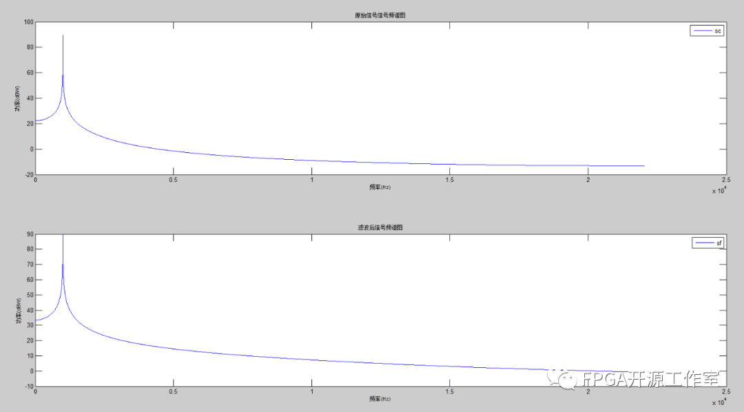 title('濾波后信號(hào)頻譜圖','fontsize',8);legend('sf');