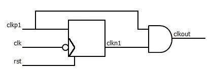 采用D觸發(fā)器的話(huà),采用方法1,用一個(gè)下降沿的D觸發(fā)器鎖存A=clkp1得到信號(hào)B=clkn1,把信號(hào)A和信號(hào)B做邏輯“與”就得到了占空比50%的分頻時(shí)鐘信號(hào)clkout[1]。
