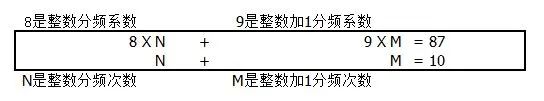 比如8.7分頻。因?yàn)闆](méi)辦法用計(jì)數(shù)器表示0.7這種數(shù)字,所以就用一個(gè)等效的概念來(lái)進(jìn)行8.7分頻,原時(shí)鐘87個(gè)周期的總時(shí)間等于分頻后的時(shí)鐘10個(gè)周期的總時(shí)間;