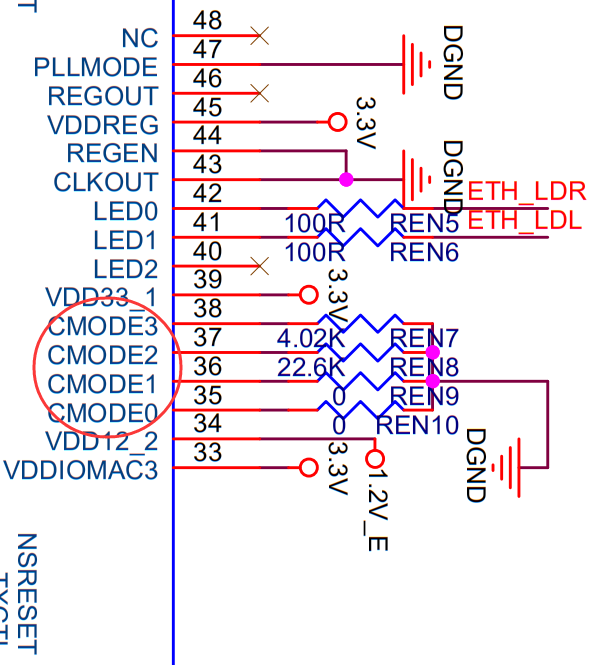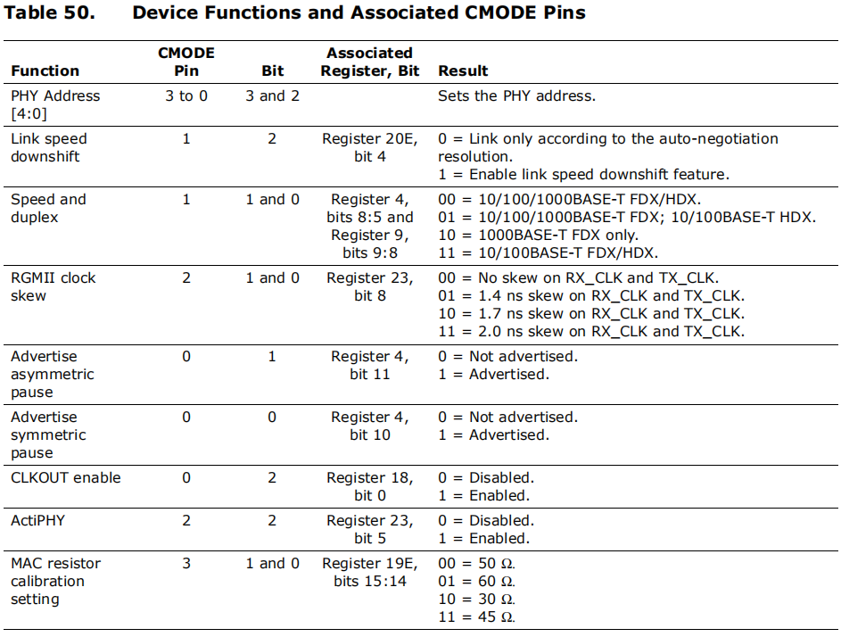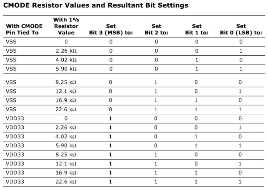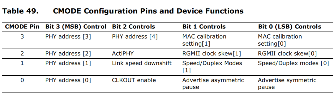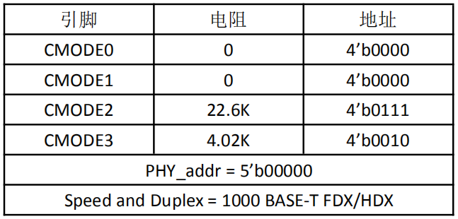 結(jié)合上面的表和 PHY 芯片的板卡原理圖,即可確定出 CMODE Pin 的具體值了。