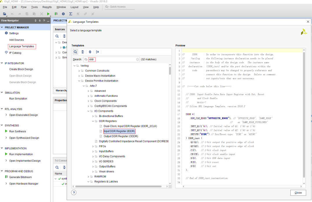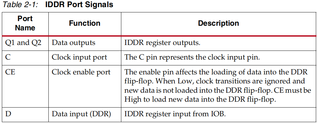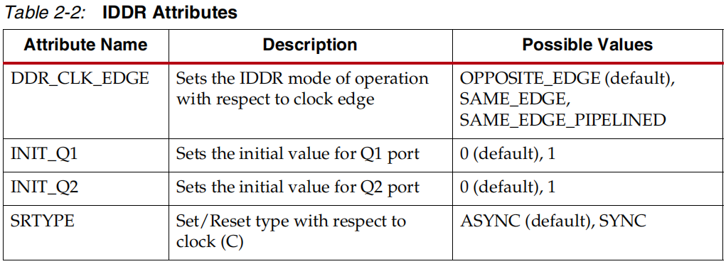 IDDR原語(yǔ)參考 7 Series FPGAs SelectIO Resources 文檔和 Xilinx 7 Series FPGA Libraries Guide for HDL Designs 。