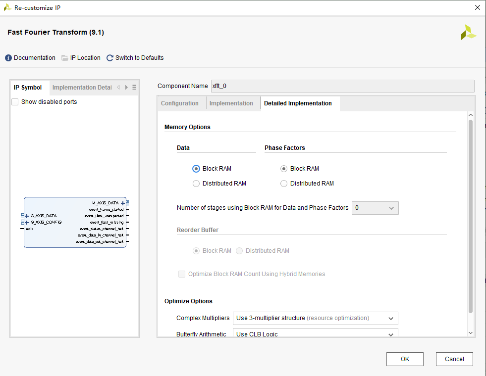 8)Block RAM或分布式RAM,用于數(shù)據(jù)和相位因子存儲(chǔ)