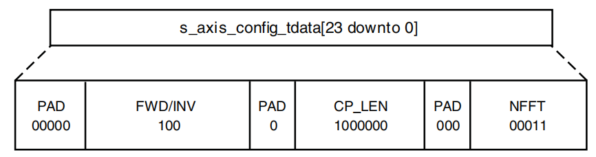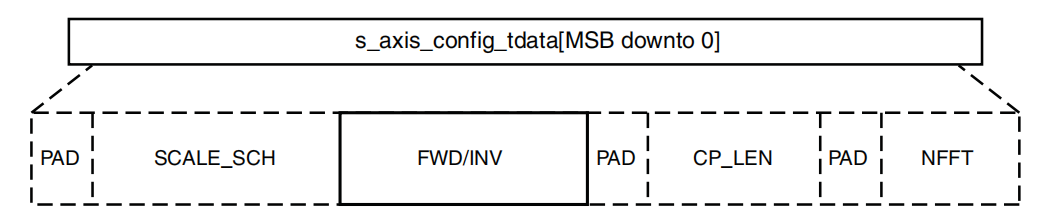 s_axis_config_tdata接口攜帶配置信息CP_LEN,FWD / INV,NFFT和SCALE_SCH。