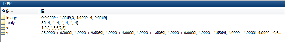 Y的實(shí)部輸出為realy=[36,-4,-4,-4,-4,-4,-4,-4];