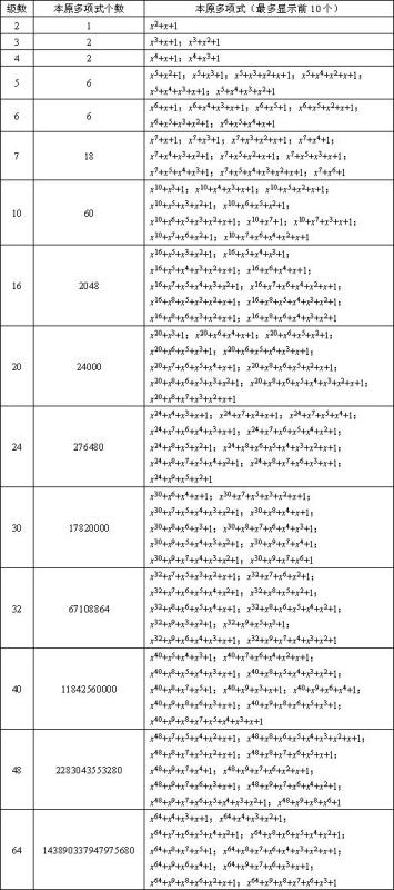當(dāng)特征多項(xiàng)式符合某些條件時稱為本原多項(xiàng)式。在設(shè)計(jì)m序列產(chǎn)生器時,移位寄存器反饋線的結(jié)構(gòu)直接決定于本原多項(xiàng)式的結(jié)構(gòu)。也就是只要找到本原多項(xiàng)式,就能由它構(gòu)成m序列產(chǎn)生器。