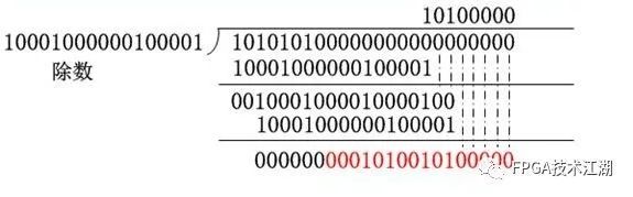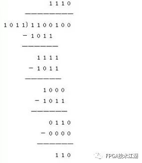 多位二進制模2除法也類似于普通意義上的多位二進制除法,但是在如何確定商的問題上兩者采用不同的規(guī)則。后者按帶借位的二進制減法,根據(jù)余數(shù)減除數(shù)夠減與否確定商1還是商0,若夠減則商1,否則商0。多位模2除法采用模2減法,不帶借位的二進制減法,因此考慮余數(shù)夠減除數(shù)與否是沒有意義的。實際上,在CRC運算中,總能保證除數(shù)的首位為1,則模2除法運算的商是由余數(shù)首位與除數(shù)首位的模2除法運算結果確定。因為除數(shù)首位總是1,按照模2除法運算法則,那么余數(shù)首位是1就商1,是0就商0。例如1100100÷1011=1110……110,列豎式計算: