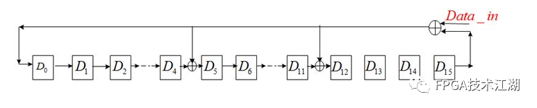 注意對比與偽隨機數(shù)產(chǎn)生器中該反饋支路的區(qū)別。