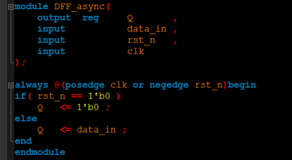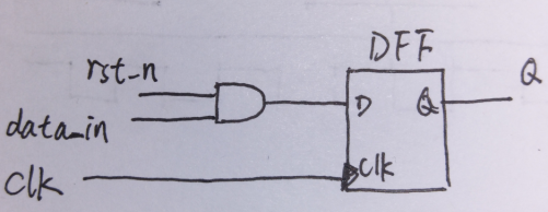 異步復(fù)位觸發(fā)器則是在設(shè)計(jì)觸發(fā)器的時(shí)候加入了一個(gè)復(fù)位引腳,也就是說復(fù)位邏輯集成在觸發(fā)器里面。(一般情況下)低電平的復(fù)位信號到達(dá)觸發(fā)器的復(fù)位端時(shí),觸發(fā)器進(jìn)入復(fù)位狀態(tài),直到復(fù)位信號撤離。帶異步復(fù)位的觸發(fā)器電路圖和RTL代碼如下所示: