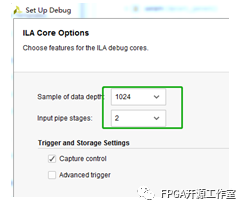 C. 設(shè)置抓取特性時(shí),"input pipe stage"建議設(shè)置到2~3。這樣雖然多用些DFF,可以確保ILA輸入時(shí)的timing更容易過。因?yàn)槟愕膁ebug邏輯可能離ILA core非常的遠(yuǎn),增加pipe stage寄存器,可以把信號(hào)一級(jí)一級(jí)pipe到ILA core的輸入口。