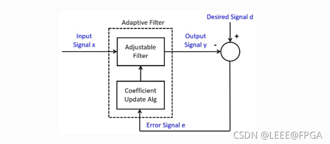 所需的輸出信號(hào) d 取決于自適應(yīng)濾鏡的具體應(yīng)用。但是,自適應(yīng)算法將更改系數(shù),從而最大限度地降低錯(cuò)誤信號(hào) e 的平均平方值。濾波器輸出由濾波器系數(shù)定義