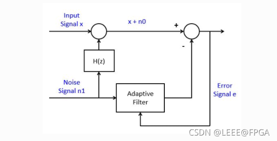 在"噪音消除"中,我們有興趣從信號(hào)中n1消除已知的擾動(dòng)。擾動(dòng)受系統(tǒng)動(dòng)態(tài)H (z)影響n0,因此我們不確定輸入信號(hào)受擾動(dòng)的影響程度。使用自適應(yīng)濾鏡,我們估計(jì)系統(tǒng)動(dòng)態(tài)(與系統(tǒng)識(shí)別類似),并從輸出信號(hào)中刪除過(guò)濾擾動(dòng)。輸出信號(hào),在噪音消除的情況下,是由錯(cuò)誤信號(hào)創(chuàng)建的,在這種情況下,它將非常類似于輸入信號(hào)x。
