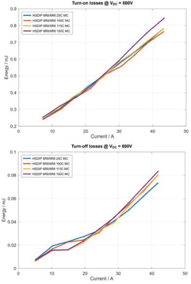 圖2:在800V直流鏈路電壓下,HSDIP模塊在不同溫度下的開通和關(guān)斷損耗
