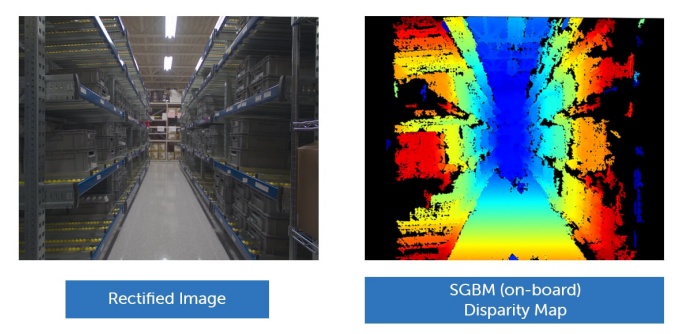 在同一個倉庫場景中,我們通過將從內(nèi)置視差引擎獲得的輸出與左側(cè)校正圖像一起輸入到神經(jīng)視差細(xì)化模型中,以優(yōu)化視差。結(jié)果如下所示: